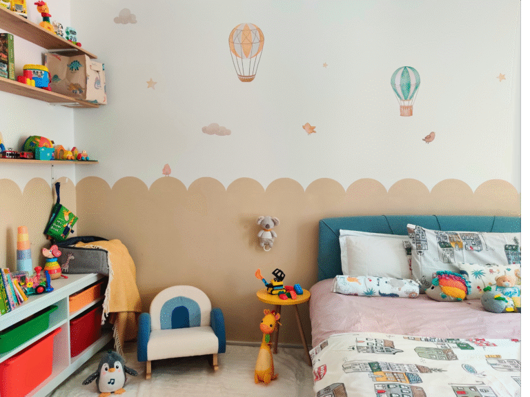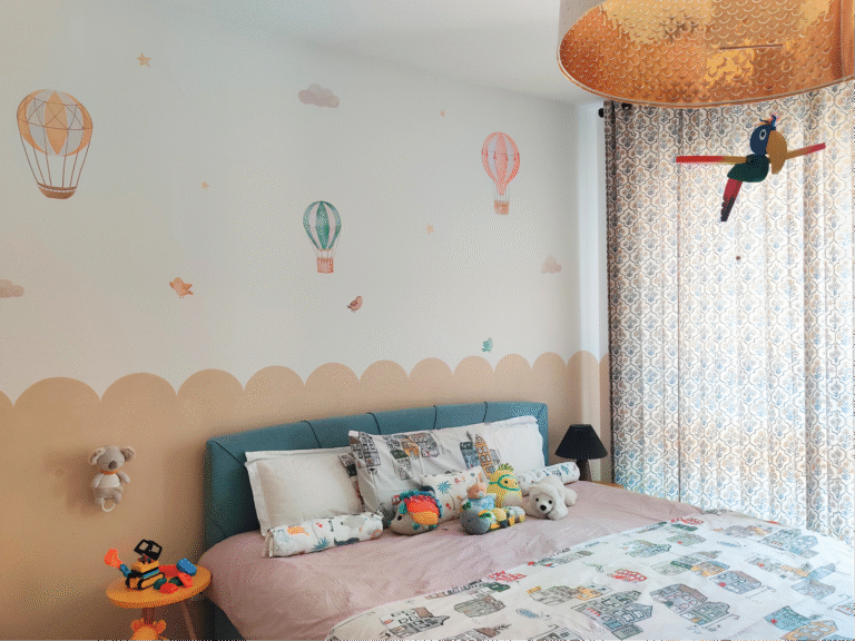 A playful sanctuary tailored for little imaginations — this kid’s room combines soft tones and vibrant accents with smart storage.Designed to inspire creativity and comfort with whimsical details addedfor everyday joy.